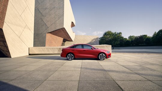 De nieuwe Audi Singleframe grille trekt alle aandacht, samen met de grote luchtinlaten en een grillerooster dat per uitvoering verschilt. Ook de tweedimensionale Audi-ringen en een nieuw velrichtingsdesign horen bij de nieuwe ontwerptaal. Zijn dynamische silhouet benadrukt zijn sportiviteit en zijn brede achterkant laat de A3 Limousine nog zelfverzekerder ogen.