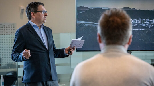 De geïnteresseerden werden tijdens een presentatie op de hoogte gebracht van De Mobiliteit voor Morgen. Walter de Bruin, mede-eigenaar van De Waal Autogroep, nam hen mee in de toekomst van mobiliteit en de visie van De Waal daarin.