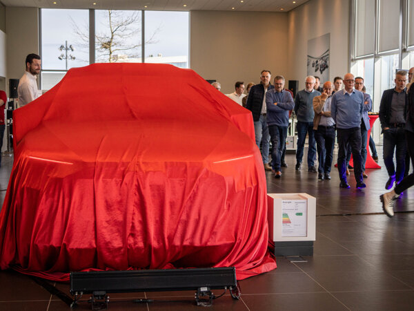Nadat Audi verkoopadviseur Onno Denneman de gasten alles vertelde over de verschillende e-tron modellen was het tijd om de Audi Q8 e-tron te onthullen.